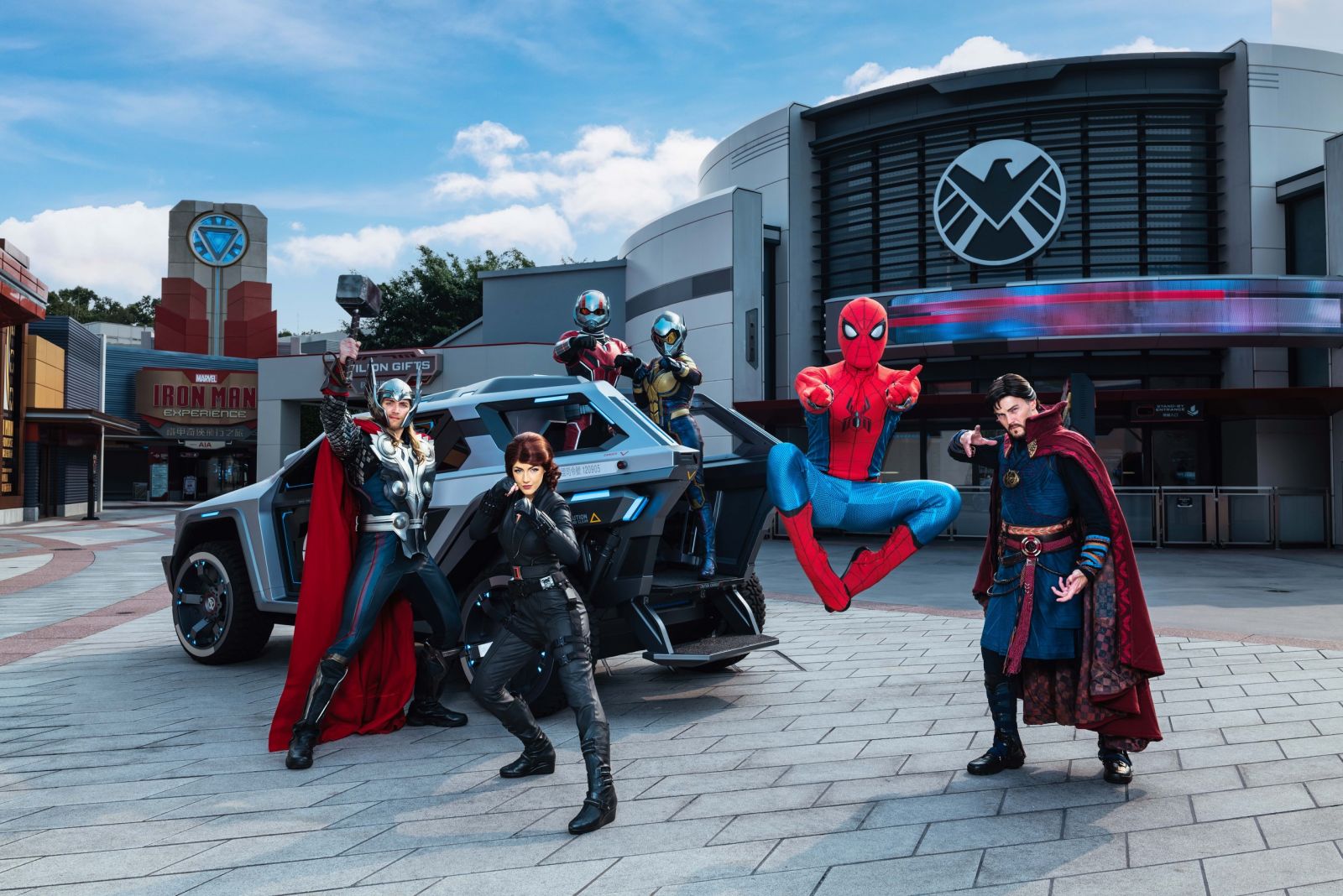 Marvel主題區包括兩項設施。「鐵甲奇俠飛行之旅」是全球首個Marvel主題設施,4D飛行模擬體驗,跟隨Iron Man飛越香港街頭,適合Marvel粉絲。「蟻俠與黃蜂女:擊戰特攻」是射擊遊戲,瞄準三角形目標可獲最高分數,適合家庭同樂。樂園更計劃擴建Marvel主題區,加入全新蜘蛛俠主題遊樂設施,採用垂直升降系統,進一步擴展明日世界Marvel主題區。
