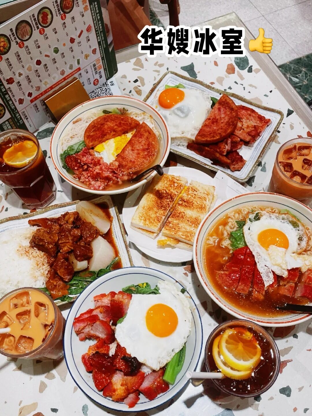 華嫂冰室喺尖沙咀算係被遊客洗過一輪,但有樣嘢好現實:仲見到街坊坐低食早餐。菠蘿油夠脆,牛油唔孤寒,番茄湯通粉味道實在,唔係靠打卡撐住。